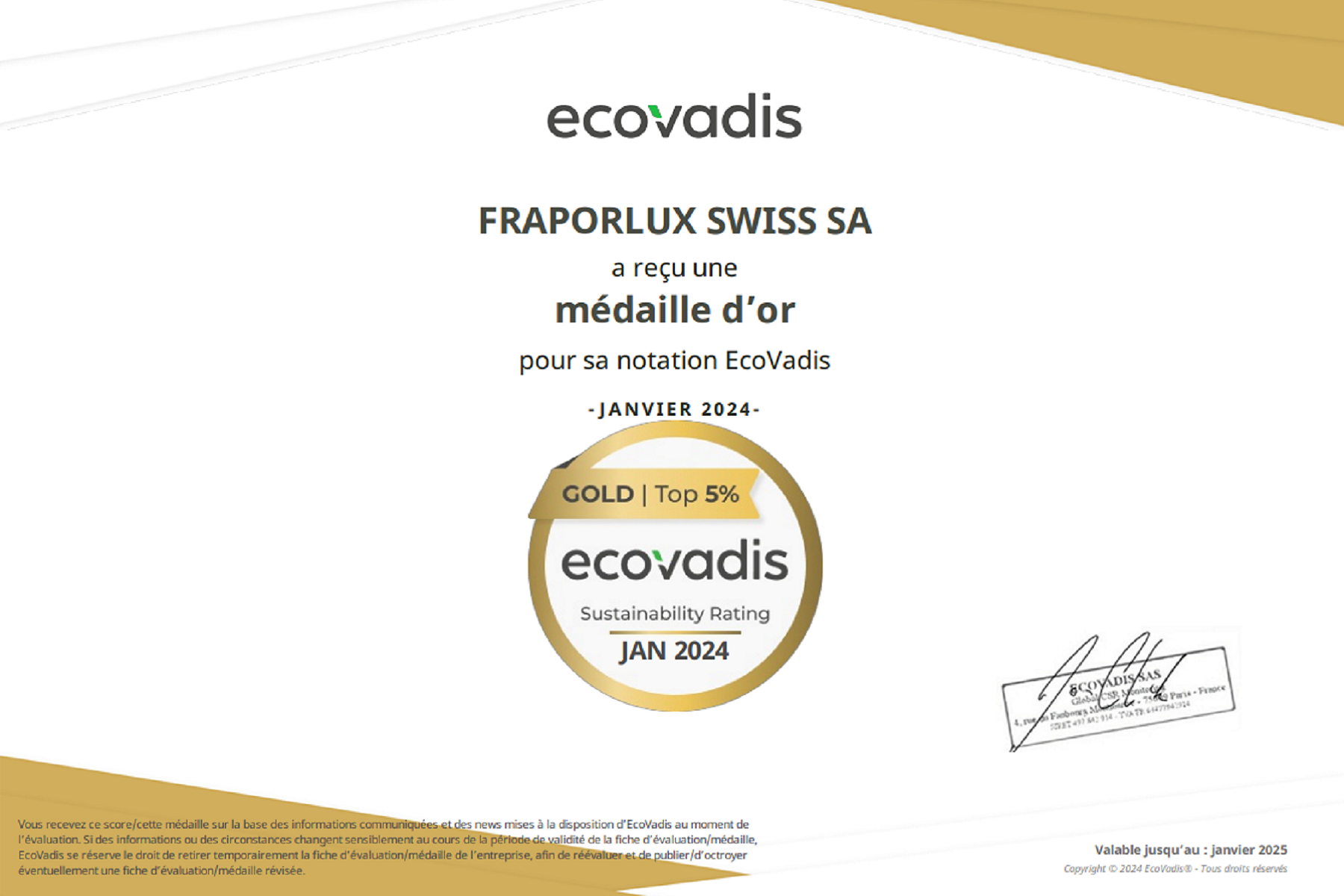 Nous sommes particulièrement fiers du renouvellement de notre certification RSE : ecovadis (GOLD).